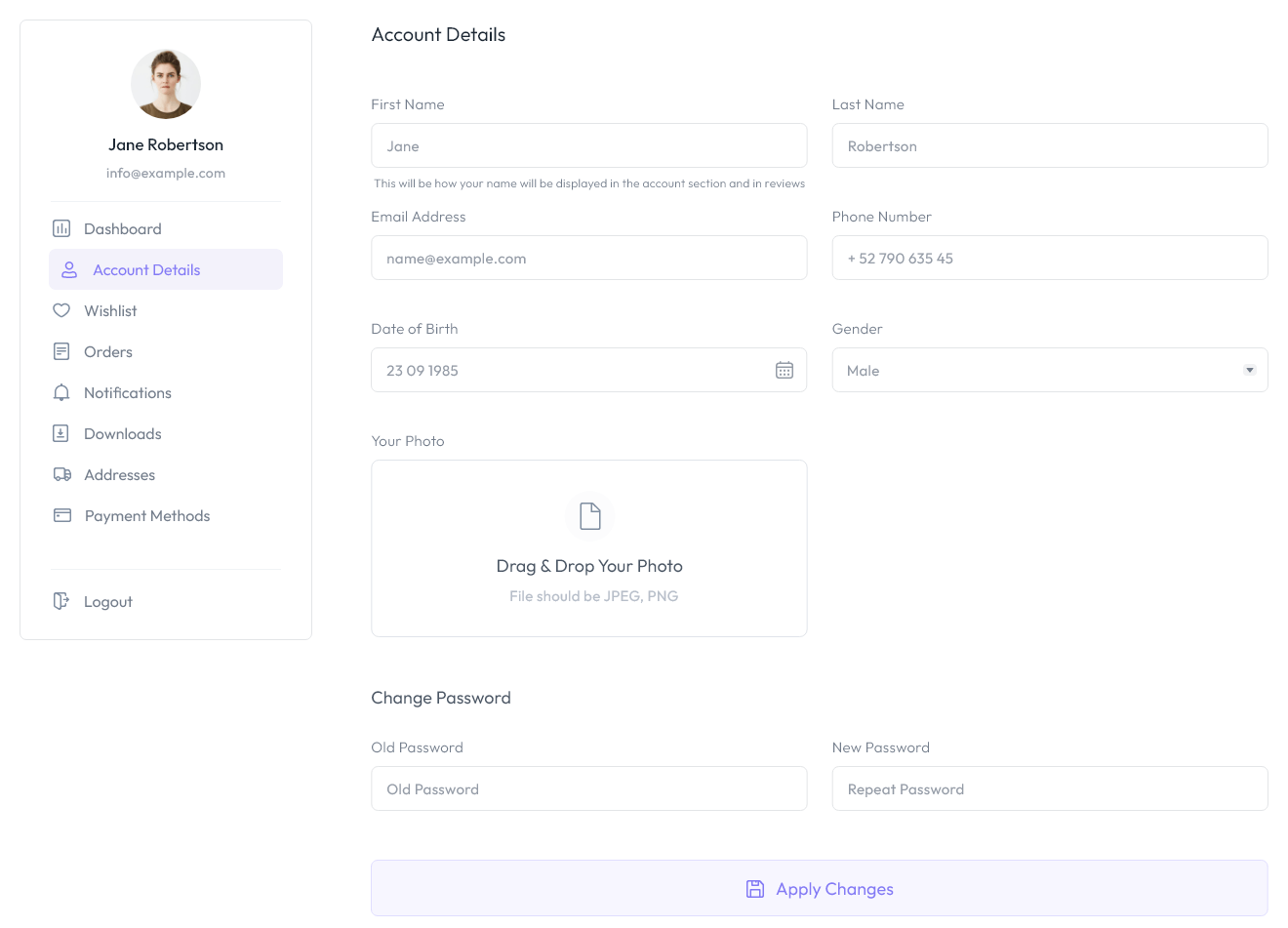 With My Account Page Builder for WooCommerce, you can add or remove custom sections from the My Account Page and alter the WooCommerce parts that come with it. These sections can contain any type of material, including words, photographs, videos, downloadable files, discount codes, and more.